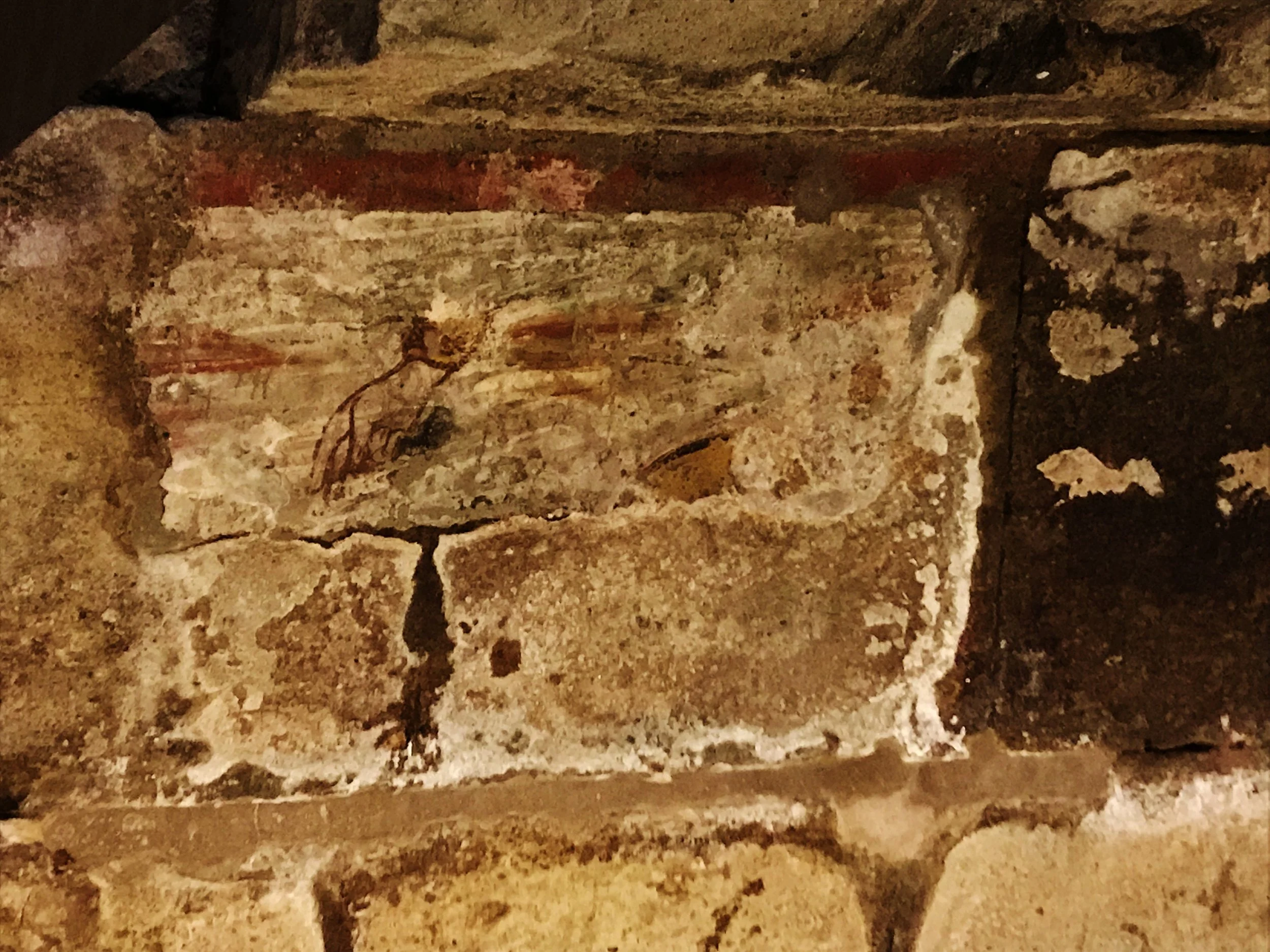In the 1940’s excavations of the underground graveyard was undertaken and amazing things were found. Several graves were found (see rendering to the left), but one stood out. It was a grave built into a great red wall that had been made into a place of worship. To one side of the red wall was another wall that was covered with early church graffiti from those who came to see the tomb. There were many references to Peter encrypted in the graffiti. A niche in the red wall was found that contained bones with cloth that appeared to be from a robe. Interestingly, a similar piece of cloth was found in the Ossuary of Paul. A piece of graffiti had fallen off the wall near the niche that read “Petro’s Eni” meaning Peter is within. The bones were analyzed and the analysis showed that they were of an older man.
