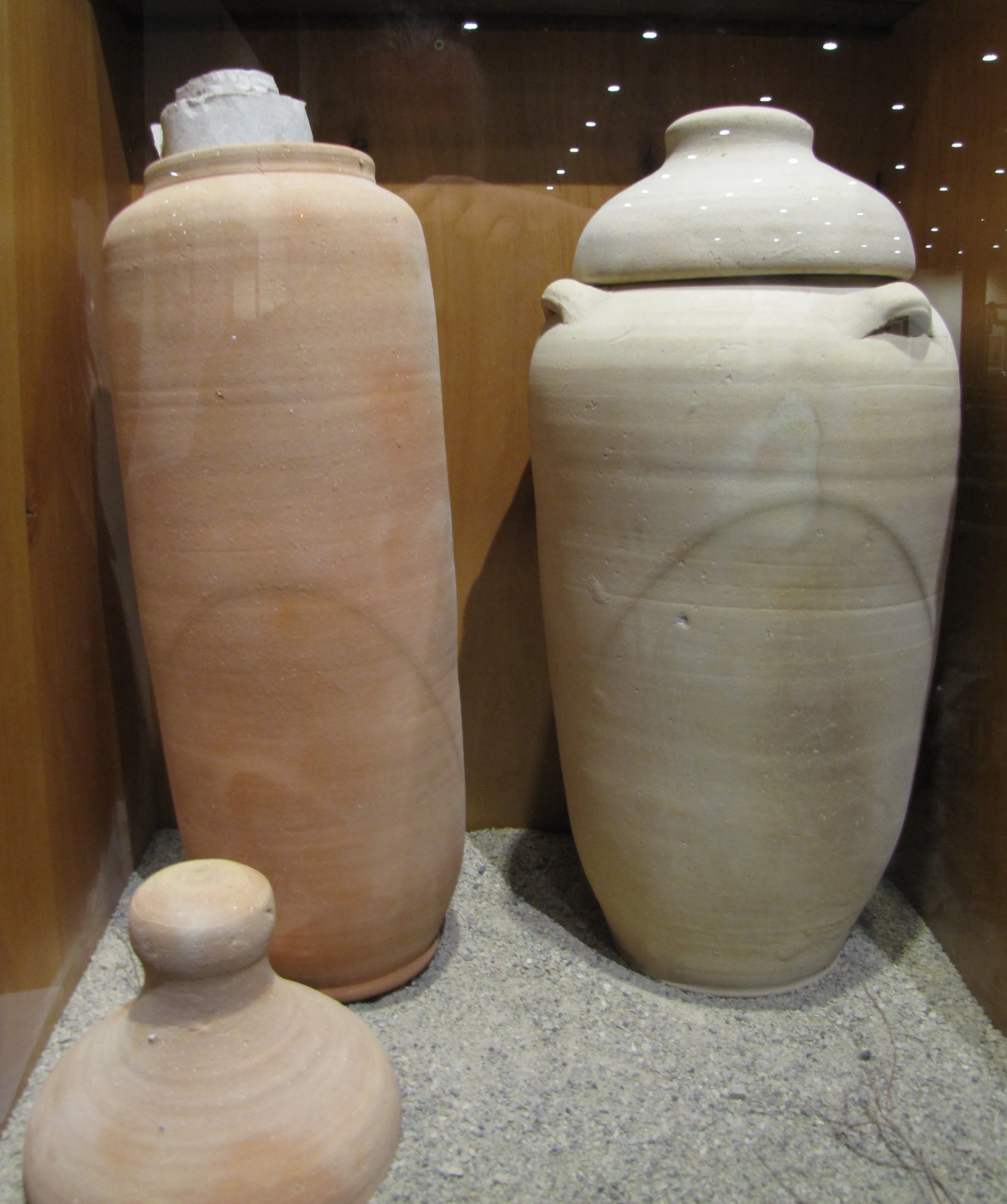 Replica of jars that held some of the Dead Sea Scrolls.